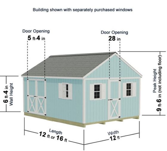 The 5′4″ W × 5′11″ H barn doors (centered on the eave side) and gable walk-in door offer excellent accessibility for tools, lawn equipment, and garden essentials. A 6/12 pitch gable roof enhances water runoff and lends classic architectural charm, making the Backyard Basecamp 12×12 a durable and visually appealing addition to any property. (previously sold as the Fairview shed kit, this is the same shed reworked for better quality and marketing).