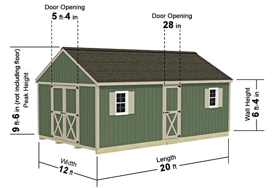 Best Barns Shedquarters 12x20 Pre-Cut Wood Shed Kit w/ Centered Gable Barn Doors & Walk-In Door on Eave (SQUASE20)