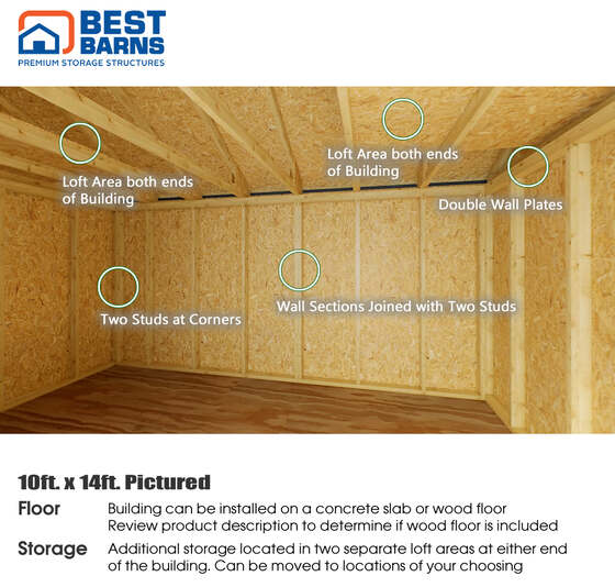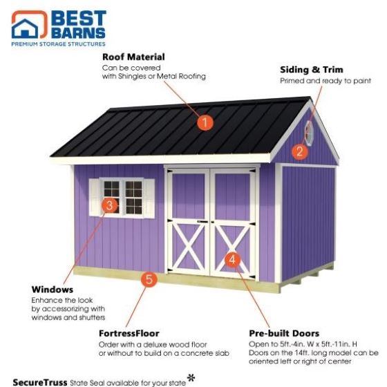 Best Barns wood shed kit components fit easily into place with no special tools or skills required!