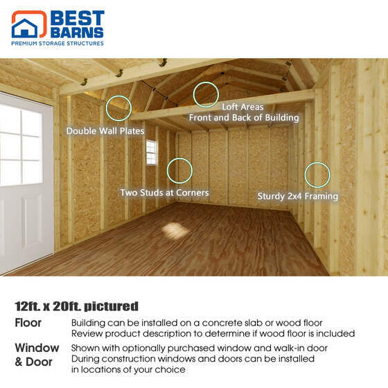 Best Barns Planner's Paradise 12x20 Pre-Cut Wood Storage Shed Kit - Sliding Doors (PPARSD20)