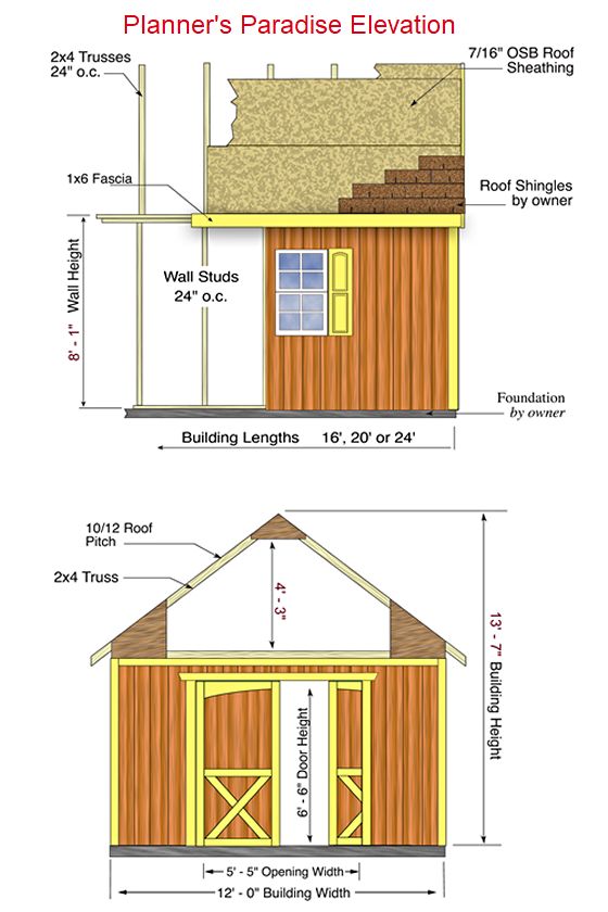 Best Barns Planner's Paradise 12x16 Pre-Cut Wood Storage Shed Kit - Sliding Doors (PPARSD16)