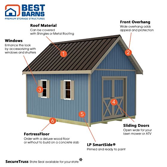 Best Barns wood shed kit components fit easily into place with no special tools or skills required!