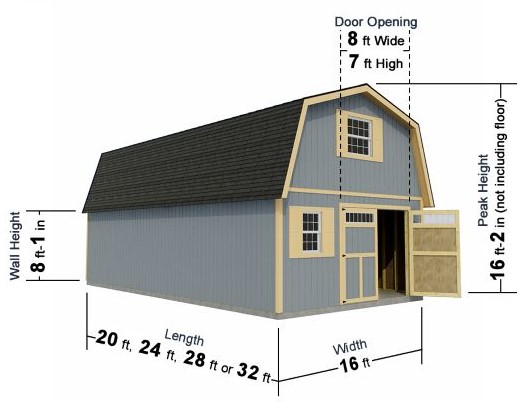 Experience the Handcrafted Homestead 16x20 XL Wood Garage and Storage Barn Kit a spacious two-story design that combines classic barn architecture with durable, home-grade craftsmanship. Featuring a full upper loft, elegant gambrel roof, and swing-open transom doors, this precision pre-cut DIY kit offers lasting strength, flexibility, and timeless style. For more details, please call us at 1-888-609-KITS!