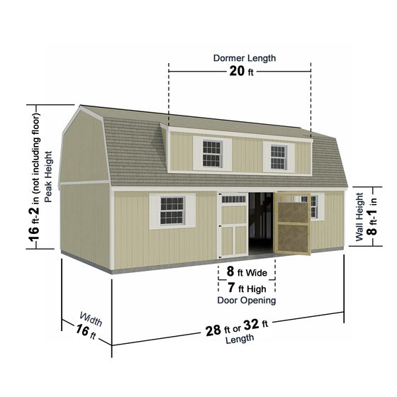 Enhance your property with the Crafted Colossal 16x28 Elite Series Wood Barndominium Kit with Dormer Windows a durable two-story structure offering exceptional space and versatility. With ample room for storage, workshops, or living areas, it features 2x4 framing for easy insulation and finishing. For more details, please see below or contact us at 888-609-5487!