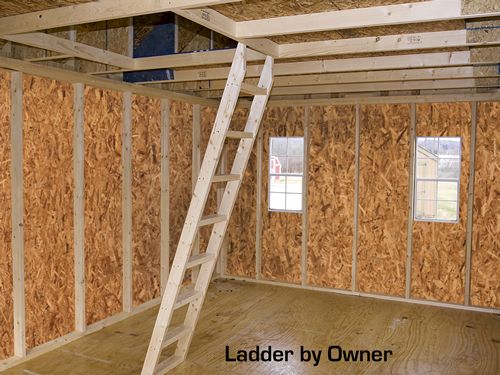 This design features a spacious 8-foot-wide loft that runs the full length of the building, offering generous storage space (please note: ladder or steps are not included).