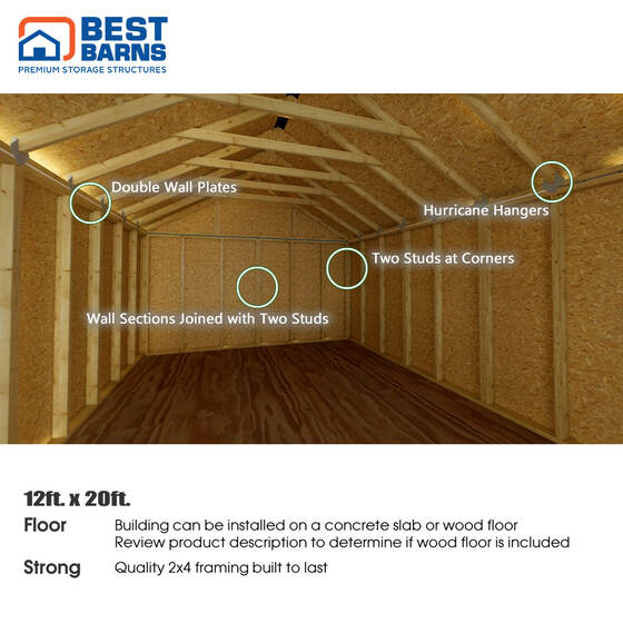 Best Barns Shedquarters 12x20 Premium Pre-Cut Wood Shed Kit w/ Offset Gable Door (SQUADG20O)