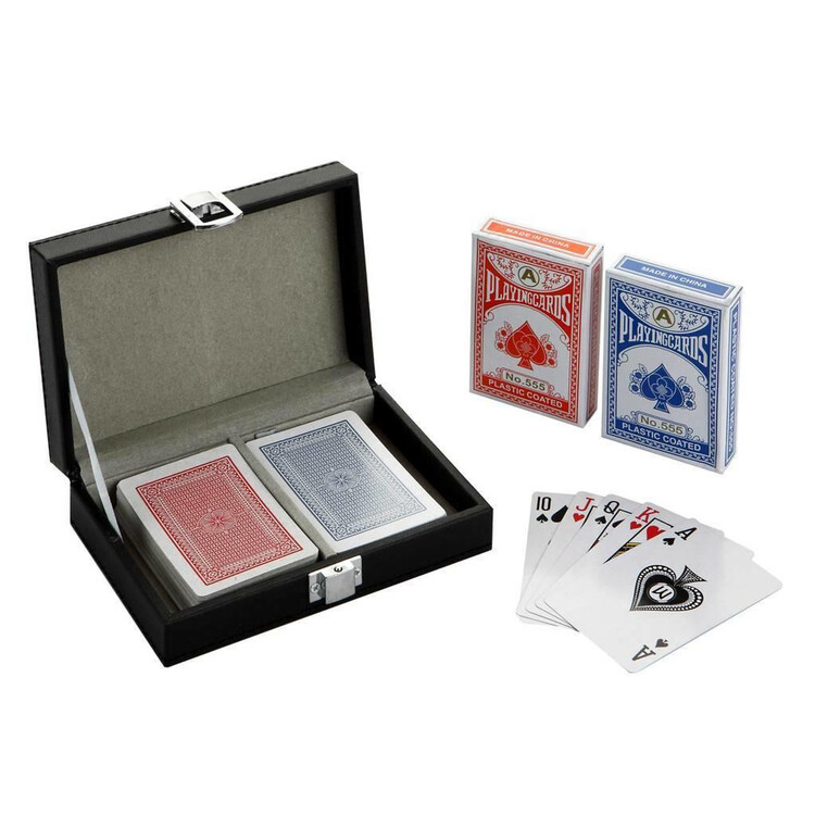 The dual-deck set comes encased in a sleek, soft-touch black leatherette case—a design as sharp and refined as the cards it protects. Lined with soft felt, the case not only keeps your cards organized but also prevents damage to edges and corners over time. The compact design (just over 5 inches long) fits easily into backpacks, briefcases, or game cabinets, making it ideal for home and travel alike.