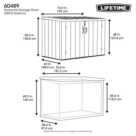 The Lifetime Horizontal Storage Shed offers compact, durable storage for garbage cans, tools, and outdoor gear. With weather-resistant materials, a steel-reinforced frame, and lockable doors, it’s a secure, stylish, and low-maintenance solution for tight spaces. For assistance with your storage needs or any inquiries, call us at 888-609-5487.