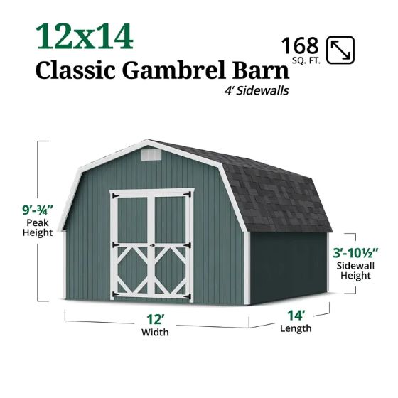 Little Cottage Co. Classic Gambrel 12x14 Wood Barn Shed Kit w/ 4' Sidewall (12x14 CGB-4-PC)
