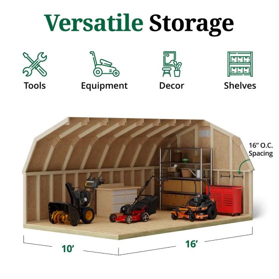 All components are pre-cut, labeled, and ready for assembly with hardware and detailed instructions included. 50-year limited warranty, the Classic Gambrel Barn is a durable, customizable, and dependable storage solution designed and manufactured in the USA.