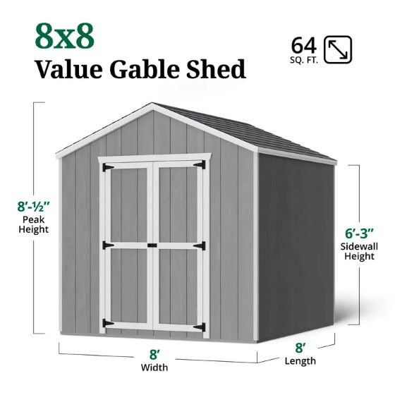 Little Cottage Co. Value Gable 8x8 Wood Storage Shed Kit (8x8-VGS-PC)
