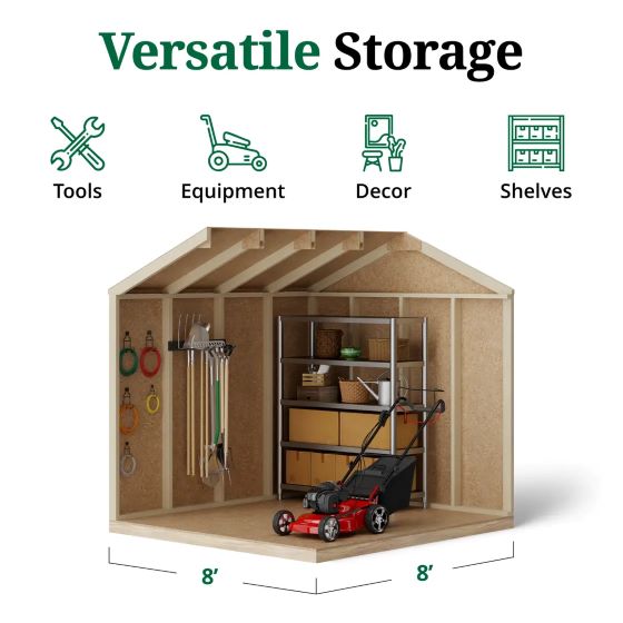 The shed includes pre-cut and labeled wood components for straightforward assembly, rust-resistant aluminum corner trim, and all necessary hardware. It also features pre-assembled double doors with metal latch and reinforced bracing for added security and longevity. Customize your shed with your preferred paint and roofing shingles (sold separately) to match your home or garden aesthetic. Proudly designed and manufactured in the USA, the Value Gable Shed is backed by a 50-year limited warranty on LP SmartSide siding delivering both beauty and peace of mind.