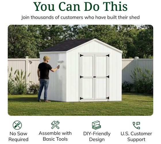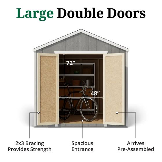 The shed includes pre-cut and labeled wood components for straightforward assembly, rust-resistant aluminum corner trim, and all necessary hardware. It also features pre-assembled double doors with metal latch and reinforced bracing for added security and longevity. Customize your shed with your preferred paint and roofing shingles (sold separately) to match your home or garden aesthetic. Proudly designed and manufactured in the USA, the Value Gable Shed is backed by a 50-year limited warranty on LP SmartSide siding delivering both beauty and peace of mind.
