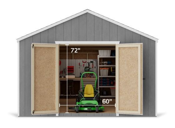 Pre-assembled Large double doors with locking door handle and 2x4 bracing to prevent sagging
