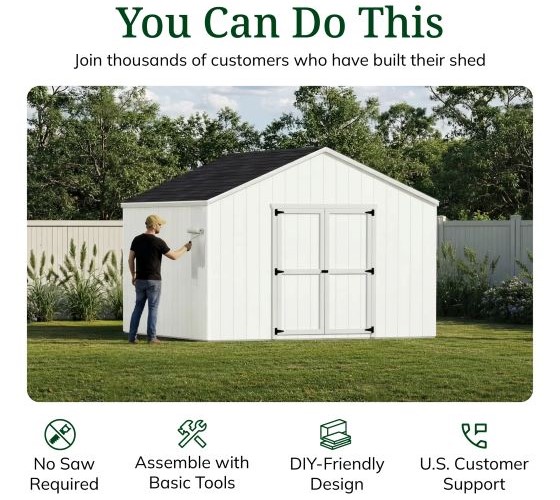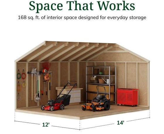 To upgrade your backyard so that it can accommodate your needs, adding the Little Cottage 12x14 Value Gable Shed will definitely make wonders! This DIY shed features a high-quality Smartside wood-composite siding and trim and is already pre-cut for easy assembly. For more details, call us at 1-888-609-KITS!