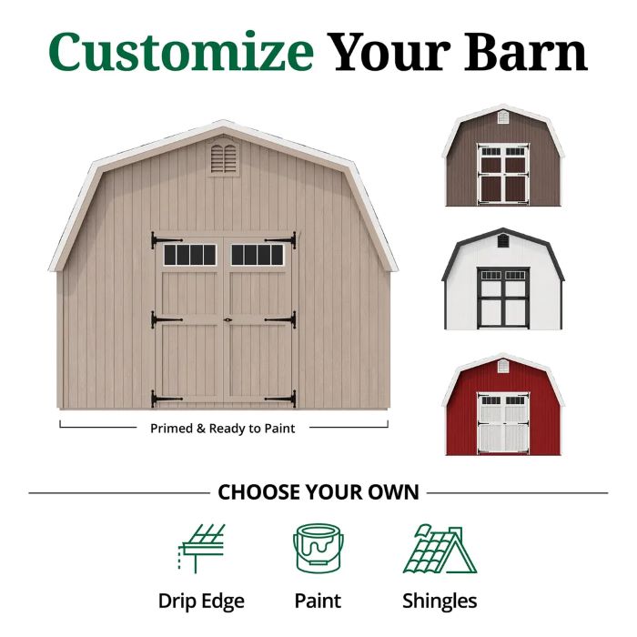 Little Cottage Co. Classic Gambrel 10x20 Wood Barn Shed Kit w/ 4' Sidewall (10x20 CGB-4-PC)