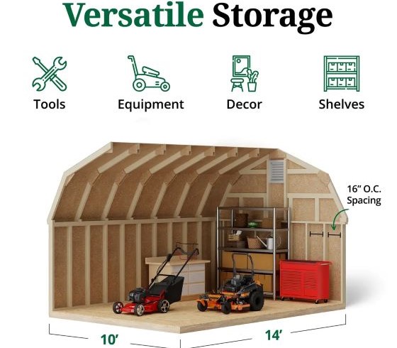 Constructed with durable 2x4 framing and premium 7/16 in. LP SmartSide siding, the barn is engineered to stand up to outdoor conditions year after year. The siding is factory-primed, resistant to decay and insects, and ready for your custom paint color. All components arrive pre-cut and clearly labeled, streamlining the assembly process.