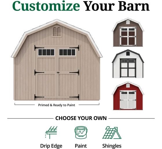 Little Cottage Co. 16x26 Classic Gambrel Large Barn Shed Kit (16x26 CGLB-PC)
