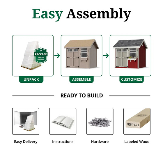 Little Cottage Co. Colonial Greenfield 8x8 Wood Barn Shed Kit (8x8 GCGS-PC)