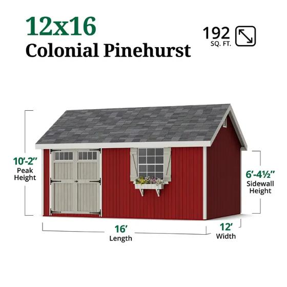 Little Cottage Co. Colonial Pinehurst 12x16 Wood Storage Shed Kit (12x16 PCGS-PC)