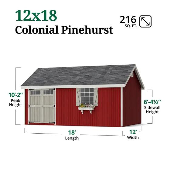 Little Cottage Co. Colonial Pinehurst 12x18 Wood Storage Shed Kit (12x18 PCGS-PC)
