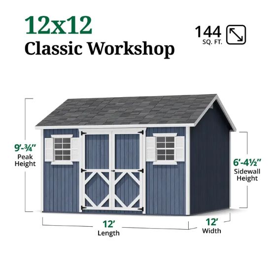 The Classic Workshop Shed offers a bright, spacious, and secure space for projects, storage, or everyday use. Built with durable LP SmartSide siding and strong 2x4 wood construction, it’s designed to withstand the elements while providing plenty of room and customizable options. Pre-cut materials and detailed instructions make assembly easy. For more details, please call 888-609-5487.