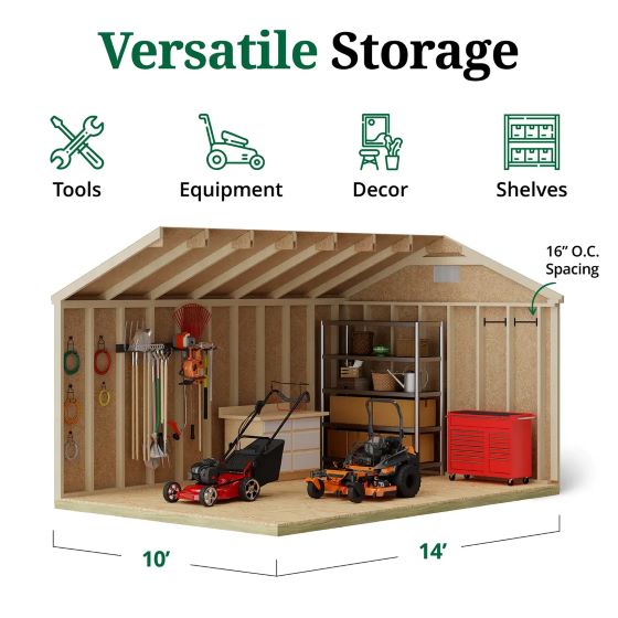 The Classic Gable Shed is built for strength, style, and convenience. With all wood pre-cut, labeled, and ready for assembly, setup is simple and hassle-free. Its durable 2x4 construction and 7/16 in. LP SmartSide siding treated to resist fungal decay and insect damage ensure lasting performance. The siding is primed and ready to paint, so you can customize the look to match your home, backed by a 50-year limited warranty.