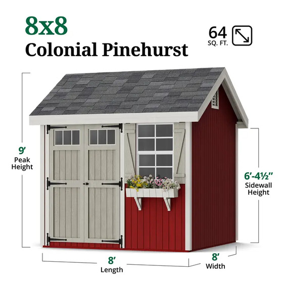 Little Cottage Co. Colonial Pinehurst 8x8 Wood Storage Shed Kit (8x8 PCGS-PC)