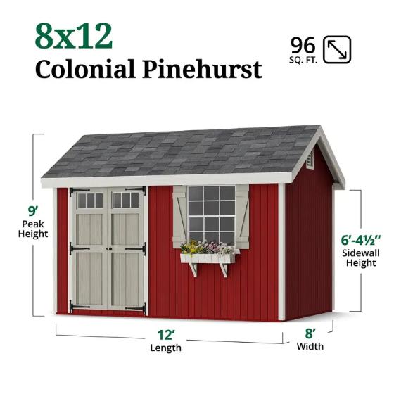 Little Cottage Co. Colonial Pinehurst 8x12 Wood Storage Shed Kit (8x12 PCGS-PC)