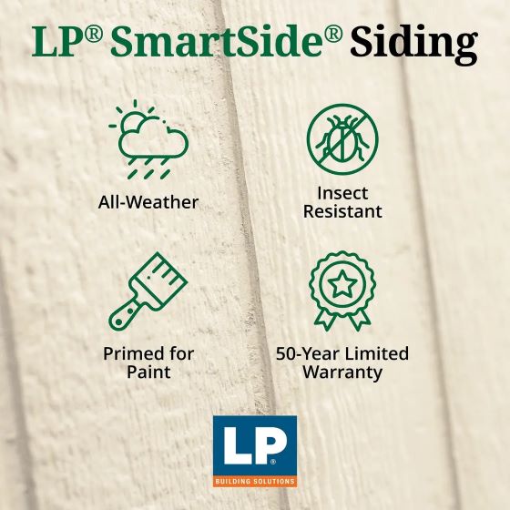 The Colonial Williamsburg Shed built with 7/16 in. LP® SmartSide® siding, this shed is engineered to resist fungal decay and insect damage while standing up to the elements. The siding comes factory-primed and ready for paint, allowing you to customize the look. For more information, please call 1-888-609-5487.
