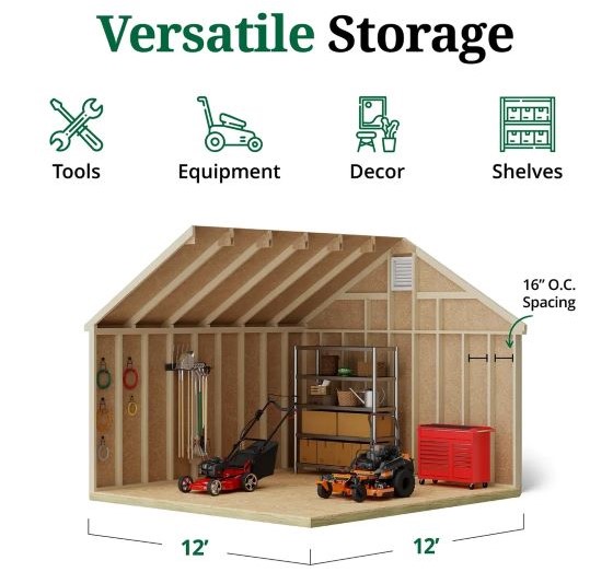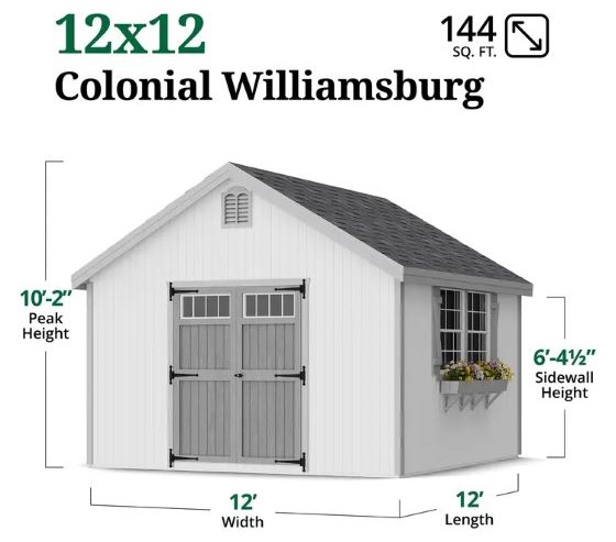 The Colonial Williamsburg Shed brings classic colonial elegance and dependable storage to your outdoor space. Designed with a traditional gable roof, decorative colonial louvers, and extended roof overhangs, this shed adds architectural charm while delivering everyday functionality. Whether used as a pool house, potting shed, garden retreat, or general storage solution, it enhances both the look and usability of your backyard. Built for strength and longevity, the shed features solid 2x4 wood construction and high-quality 7/16 in. LP SmartSide siding, engineered to resist fungal decay and insect infestation. All wood components arrive pre-cut, labeled, and ready for assembly, making installation straightforward. The siding comes factory-primed, allowing you to customize the shed with your preferred paint and shingles (sold separately).