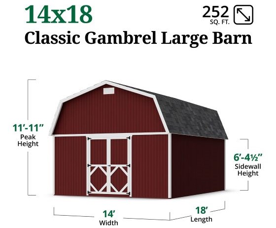 Little Cottage Co. 14x18 Classic Gambrel Large Barn Shed Kit (14x18 CGLB-PC)