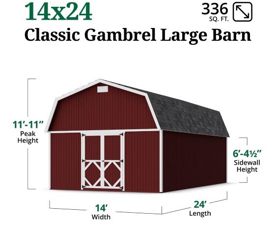 Little Cottage Co. 14x24 Classic Gambrel Large Barn Shed Kit (14x24 CGLB-PC)