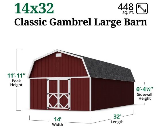 Little Cottage Co. 14x32 Classic Gambrel Large Barn Shed Kit (14x32 CGLB-PC)