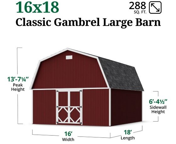 Little Cottage Co. 16x18 Classic Gambrel Large Barn Shed Kit (16x18 CGLB-PC)