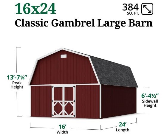 Little Cottage Co. 16x24 Classic Gambrel Large Barn Shed Kit (16x24 CGLB-PC)