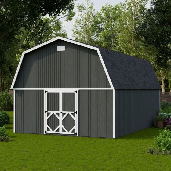 Pre-assembled double doors with heavy-duty 2x4 bracing allow easy access and help prevent sagging over time. Built-in vents promote airflow to reduce moisture buildup, while the extended roof overhang adds both protection and visual appeal. LP® SmartSide® corner trim completes the finished look. Available in 17 different sizes, the Classic Gambrel Large Barn can be customized to fit your space and storage needs. Shingles and paint are sold separately, allowing you to personalize the barn to complement your property. Designed and manufactured in the USA, the LP SmartSide siding is backed by a 50-year limited warranty for long-term peace of mind.