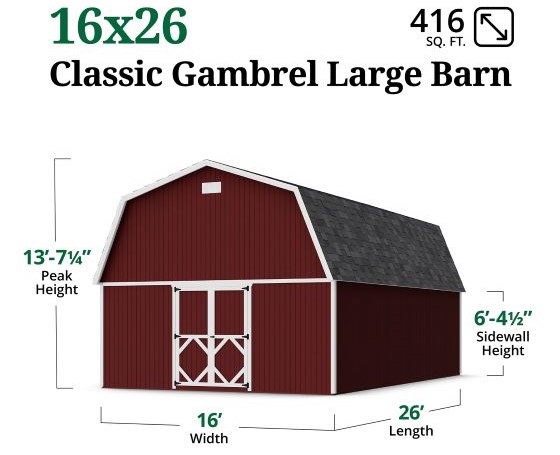 Little Cottage Co. 16x26 Classic Gambrel Large Barn Shed Kit (16x26 CGLB-PC)