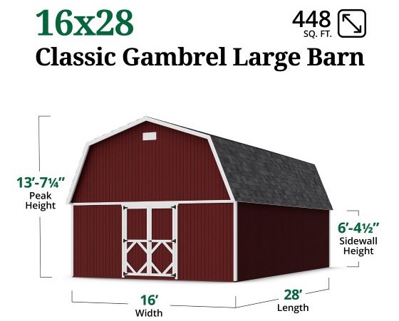 Little Cottage Co. 16x28 Classic Gambrel Large Barn Shed Kit (16x28 CGLB-PC)