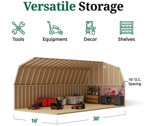 Little Cottage Co. 16x30 Classic Gambrel Large Barn Shed Kit (16x30 CGLB-PC)