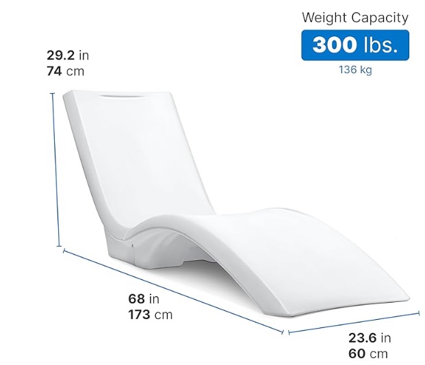 Whether you’re keeping an eye on the kids as they splash around on a sunny Saturday or enjoying a quiet moment with a favorite book, this in-pool lounge chair is ready for any occasion. Designed as a stylish and versatile pool ledge lounger, it’s optimized for use on a tanning ledge with up to 12 in. (30.5 cm) of water or around the pool’s perimeter. Crafted to endure both time and the elements, it features upgraded marine-grade stainless steel hardware for lasting durability, even in chlorine or saltwater environments. Its rich, opaque white finish brings a touch of elegance to your poolside setup while remaining easy to maintain ideal for homeowners who want both beauty and practicality. Proudly made in the USA with a combination of domestic and imported parts.