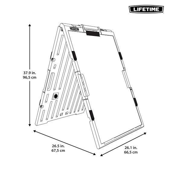 Setup and handling are easy thanks to top and side handles, and the sign folds flat for compact storage when not in use. Simply clip your message into the frame using the top sign clip and secure it with the swing-out side fasteners, which accommodate inserts up to 3/16" thick. For added stability, you can fill the base with sand or water to keep the sign from being moved by wind. When it’s time to store it, just unplug, empty, and fold it flat. The controlled opening hinge keeps the sign steady and balanced, preventing it from opening too far. Whether you’re advertising a sale, directing traffic, or making an important announcement, the Lifetime Sidewalk Sign delivers high-quality visibility with low maintenance and long-lasting performance.