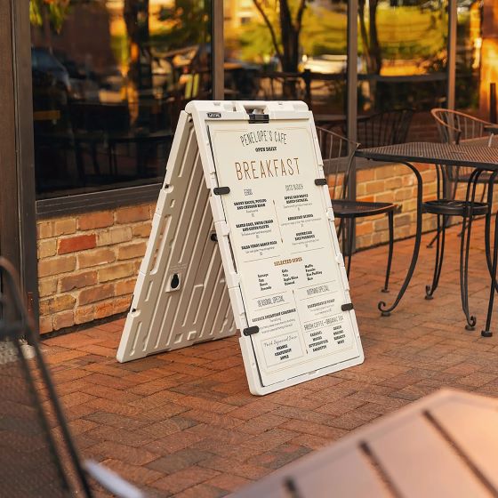 Make your message stand out with the Lifetime Sidewalk Sign—designed to draw attention whether you’re promoting a business, event, or special announcement. Built for both indoor and outdoor use, this versatile sign is engineered for convenience and durability. The sign is constructed from high-density polyethylene, a material that is stronger and lighter than wood while requiring minimal maintenance. UV inhibitors in the material protect it from fading, warping, and damage from sun or water exposure, so you can rely on your sign to perform well in all weather conditions.