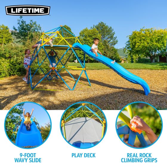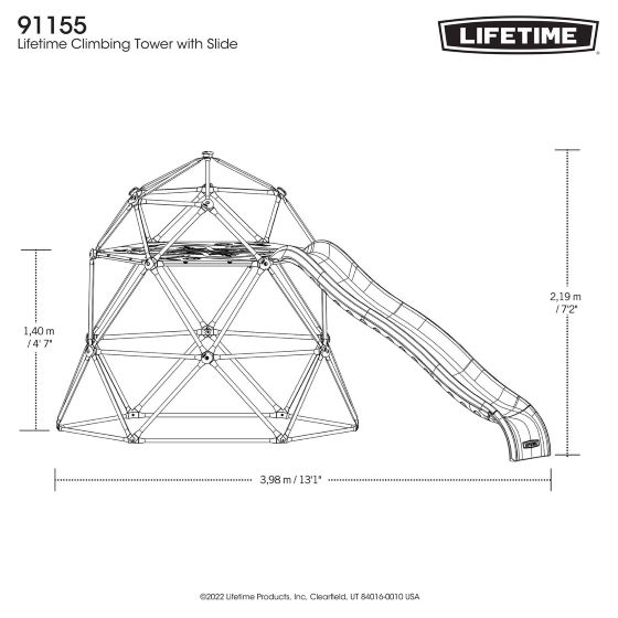Kids can enjoy endless outdoor adventures with the Lifetime Kids Climbing Tower with Slide (91155) a fun and active playset designed to inspire imagination and keep children moving. Whether they’re pretending they’re exploring a castle lookout, guarding a secret fort, or launching missions to outer space, this climbing tower creates the perfect setting for creative backyard play. Built with a secure steel climbing frame, kids can confidently climb up to the platform and then race back down the smooth slide for repeated fun. The elevated play area also gives children a great space to relax, pretend, and play games, including the included car map on the platform for even more interactive entertainment.