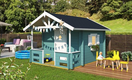 The Palmako Lido Playhouse is a charming and durable wooden cabin designed for fun and versatility. Built with thick, solid tongue-and-groove wood, it offers a safe and sturdy space for kids to play. This playhouse can also be used later as a garden shed or small studio. For more details, please contact us at 1-888-69-5487.